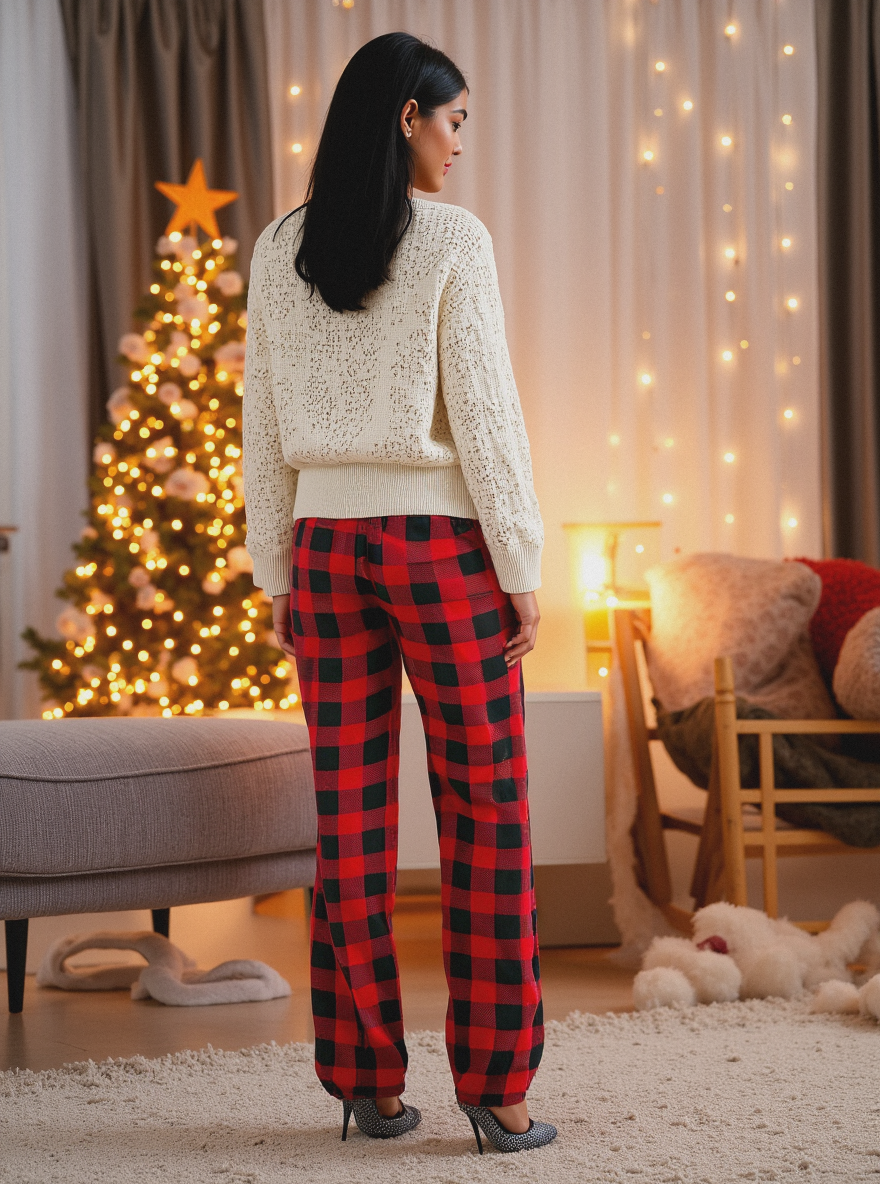 Deze zachte geruite Pyjamabroek is ideaal voor herfst & winter – gemaakt van stretch denim met een subtiel Kerstmotief. Casual maar stijlvol, perfect voor je dagelijkse look.